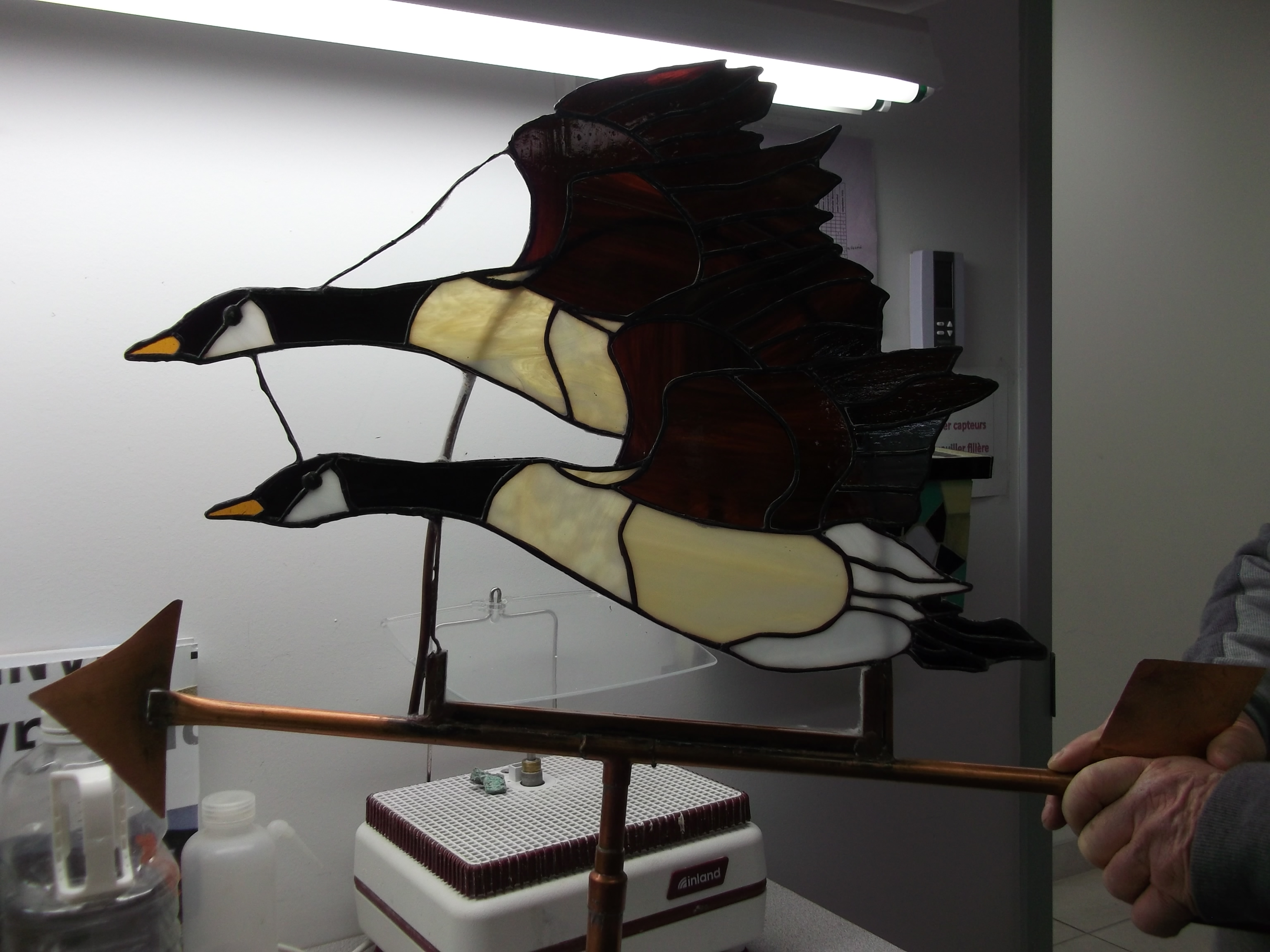 Girouette: Durée du cours : 12 heures ( 4 semaines de 3h ) Plage horaire : à déterminer selon la demande Coût : 120$ . La carte de membre de 40$ est exigée. Matériel : le verre est au frais de l'élève; l'atelier fourni tout le matériel de cuivre servant à la base. Projet : réalisation d'une girouette parmi les quelques modèles proposés Capacité : 4 personnes max. Pour informations contactez : Nadia Gévry au nadiagevry@hotmail.com ou Hélène au 450-464-9319